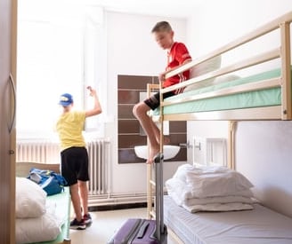Les enfants sont encouragés à maintenir leurs chambres en ordre. Des petits balais sont mis à disposition pour leur permettre de nettoyer chaque jour. En cas de besoin pendant le séjour, notre équipe peut évidemment passer dans les chambres en complément du ménage des enfants.