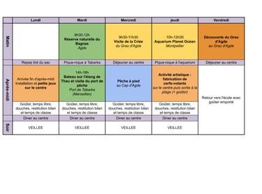 Les journées sont organisées avec un équilibre entre activités, repas, temps libres et veillées. Vous trouverez le déroulement d’une journée type dans l’onglet "le centre - journée type".