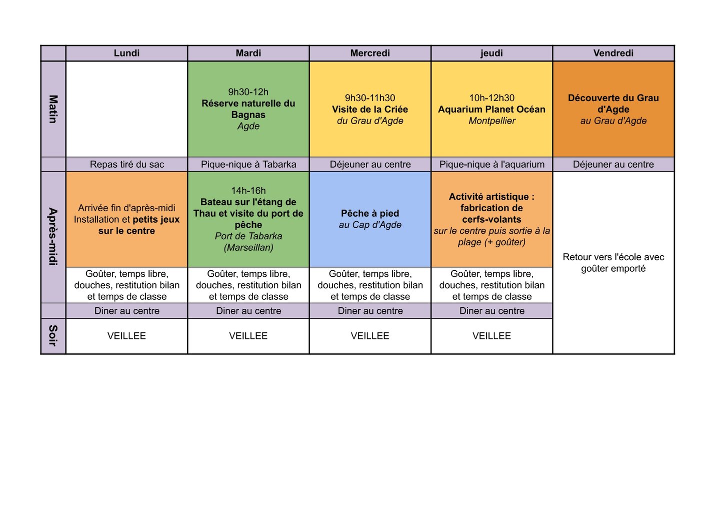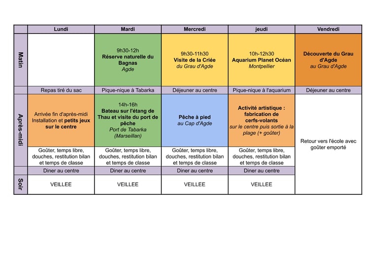 Le projet de la classe de découvertes donne la thématique du séjour.